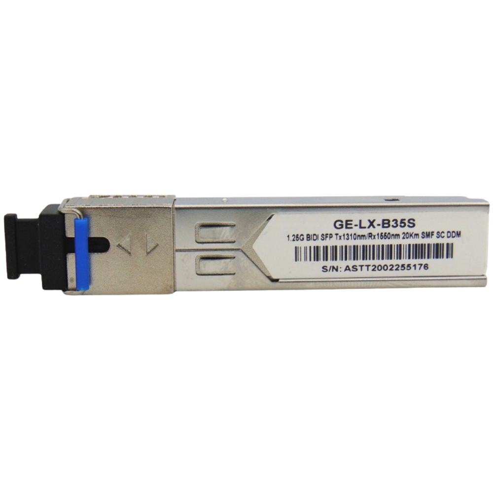Transceptor 1.25 Gigabit SFP para transmitir e receber dados ópticos em fibra monomodo para comprimento de link de até 20 km.