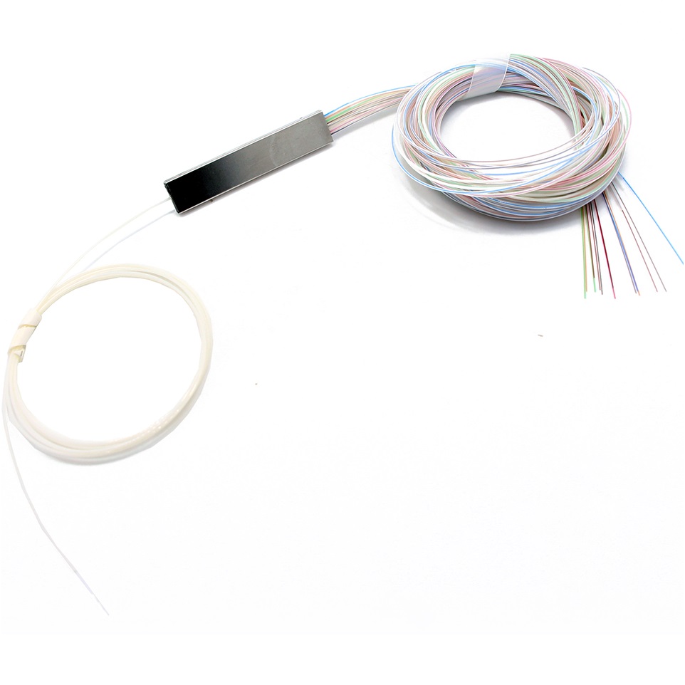 Splitter Balanceado sem conector (PLC) é um componente passivo utilizado para realizar a divisão do sinal óptico em uma rede de distribuição PON. Ideal para atuar entre os comprimentos de onda de 1.260nm a 1.650nm sendo o mais comum 1310nm a 1490nm (ONU / OLT) e também sendo usado em conversor de mídia de 1310nm a 1550nm (LA / LB). Conta com fibras de baixa sensibilidade a curvatura (G.657A) e é ideal para sistemas FTTH. Permite fazer a melhor distribuição da potência óptica, de forma proporcional (mesma potência em todas as saídas), com perda quase nula pois não utiliza conectores em suas extremidades.